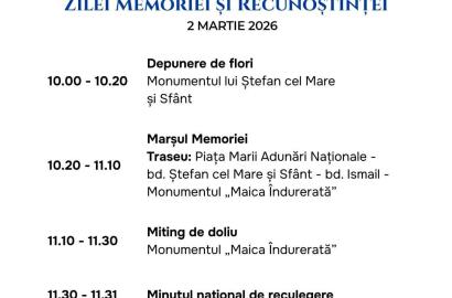 At 10:20, the three leaders will join the veterans of the Transnistria War in the March of Remembrance. The column will be created on the Great National Assembly Square (PMAN) and will proceed towards the Grieving Mother monument. Veterans and all citizens are invited to join the march from its starting point – the PMAN – and to participate in this event of national unity, in order to honor the courage and resilience of our people and to reaffirm the commitment to peace and freedom.