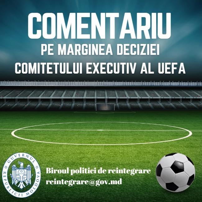 În contextul deciziei Comitetului Executiv al Uniunii Asociațiilor Europene de Fotbal (UEFA), de a permite desfășurarea jocurilor din cupele europene de fotbal la Tiraspol și a plasării unui comunicat de presă în acest sens, redifuzat și de către Federația Moldovenească de Fotbal (FMF), Biroul politici de reintegrare precizează următoarele.