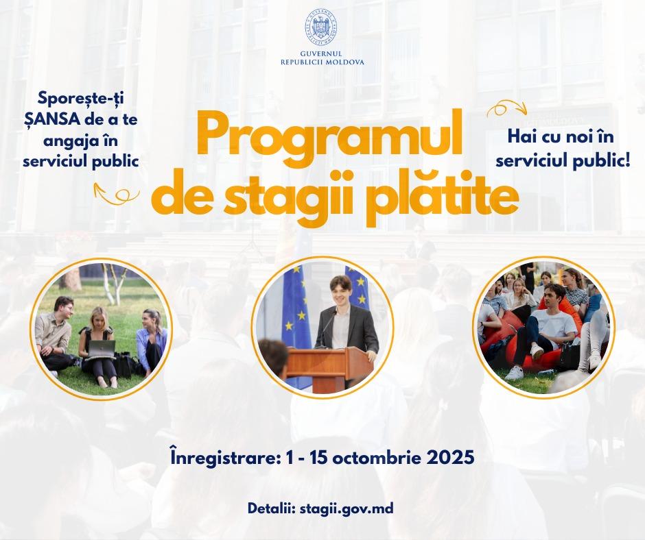 1 octombrie 2025, Chișinău – Guvernul anunță lansarea înregistrării pentru participarea la cea de-a V-a ediție a Programului de stagii plătite în serviciul public.