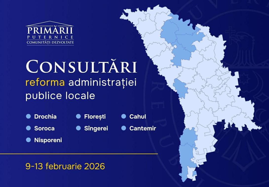 Reprezentanții Guvernului au mers în șapte raioane, în ultimele cinci zile, pentru a discuta despre reforma administrației publice locale (APL). În perioada 9 – 13 februarie 2026, Executivul a organizat consultări publice privind reforma APL în raioanele Drochia, Soroca, Nisporeni, Florești, Sângerei, Cantemir și Cahul.